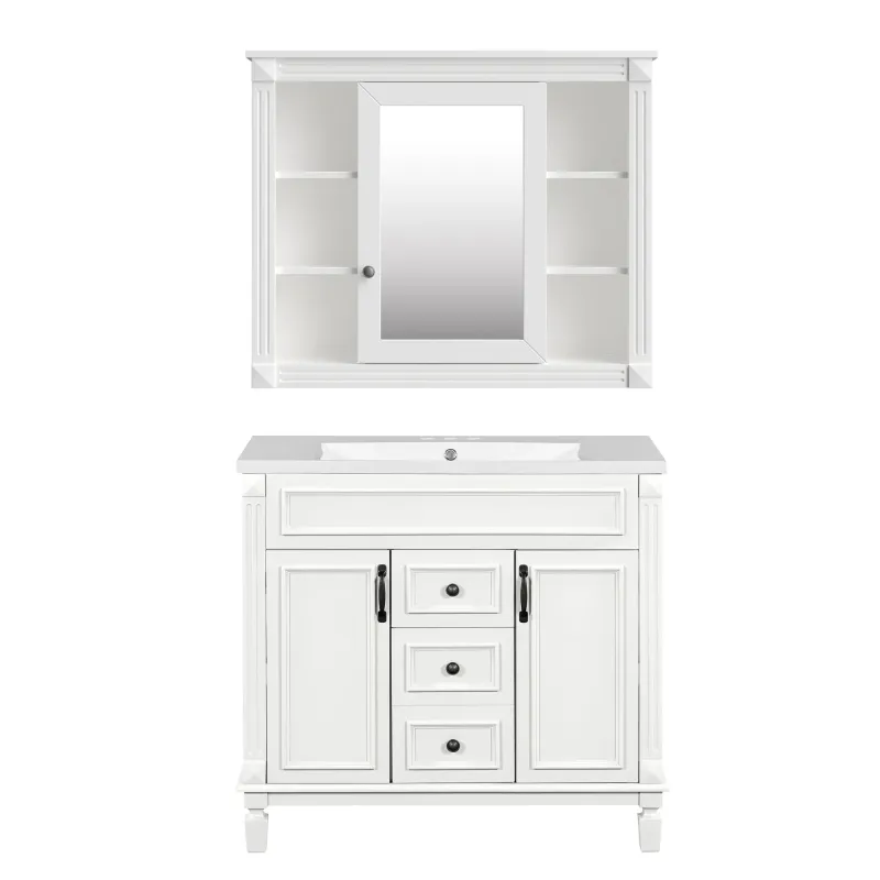 Bathroom Vanity With Top Sink, Mirror Cabinet, 2 Soft Closing ● Warranty covers 5 years ● 100,000 Mechanical Operations Guaranteed ▶ Extend Your Tool’s Lifespan