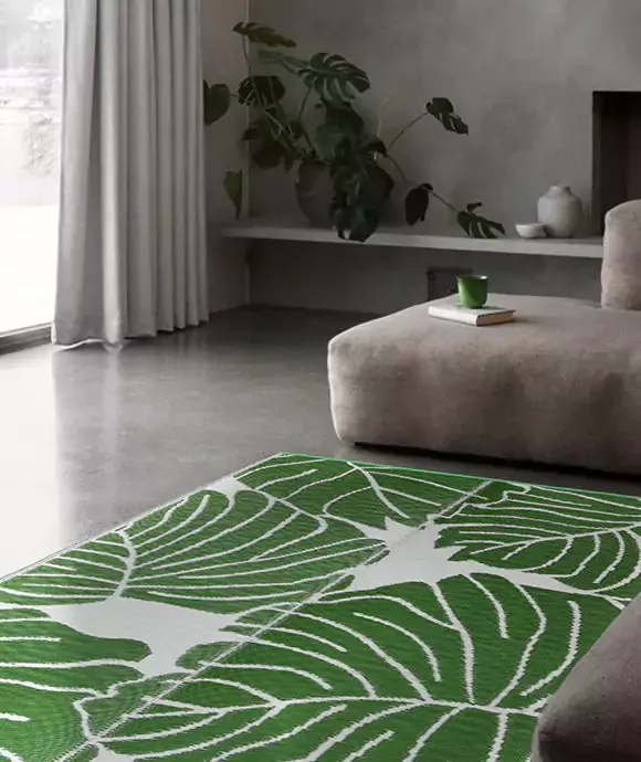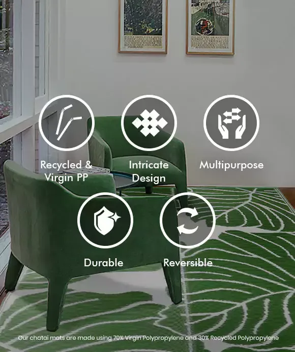Bring subtle elements of nature to your living room with the FL-10 Mint & white Mat. The intricate leaf patterns with underlying shadows place an earthy touch of green to your living room and depict a perfect sense of belonging, down-to-earth nature and love. Made with premium virgin quality polypropylene straws, Sapana plastic mats offer strength, softness and beauty, all in one.