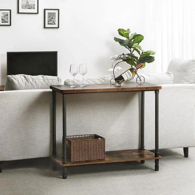 FIND DETAILS AS HARD AS IRON: This industrial sofa table boasts unique design details like rare iron water pipe legs, a thick, 1.2″ crafted wood table top in rustic brown, and rounded corners, letting you take your hallway or living room to the next level