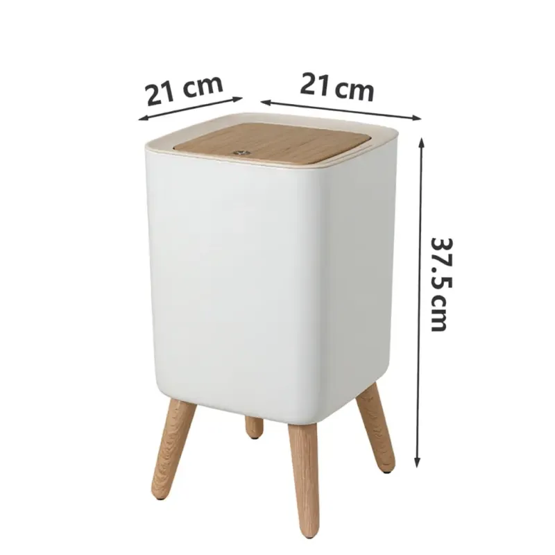 Poubelle design nordique avec pieds en bois et couvercle pop-up