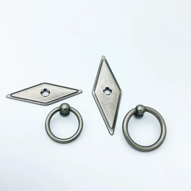 Rhombus “Ella” Antique Silver Ring Drawer Pulls with Backplate ✔ Maintains warranty on cabinet finishes ✔ Suitable for antique furniture restoration 🛒 Get Hardware Installation Ready