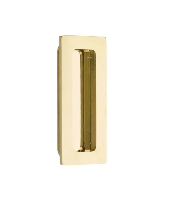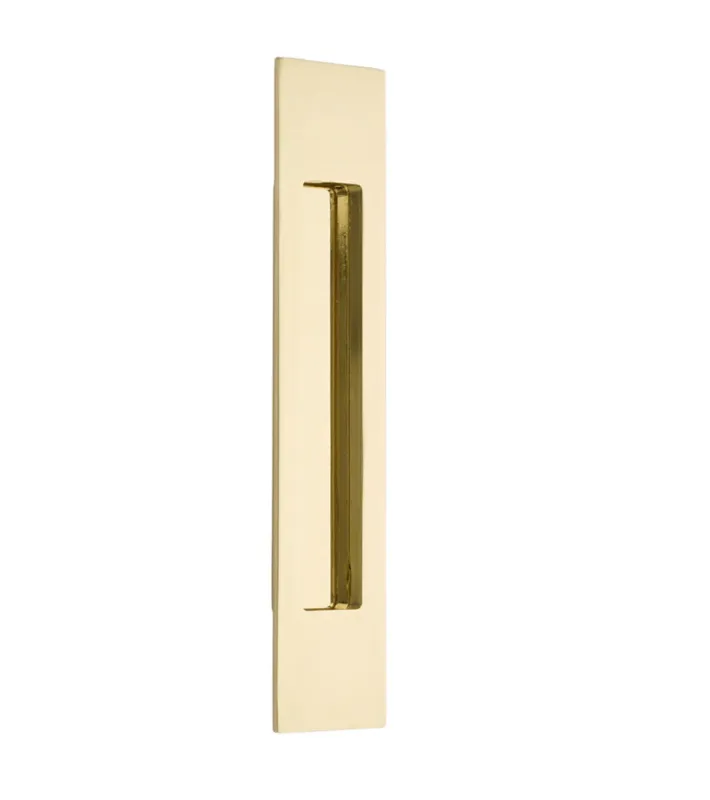Modern Rectangular Flush Unlacquered Polished Brass Recess Door Pull