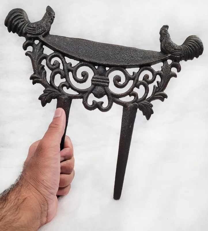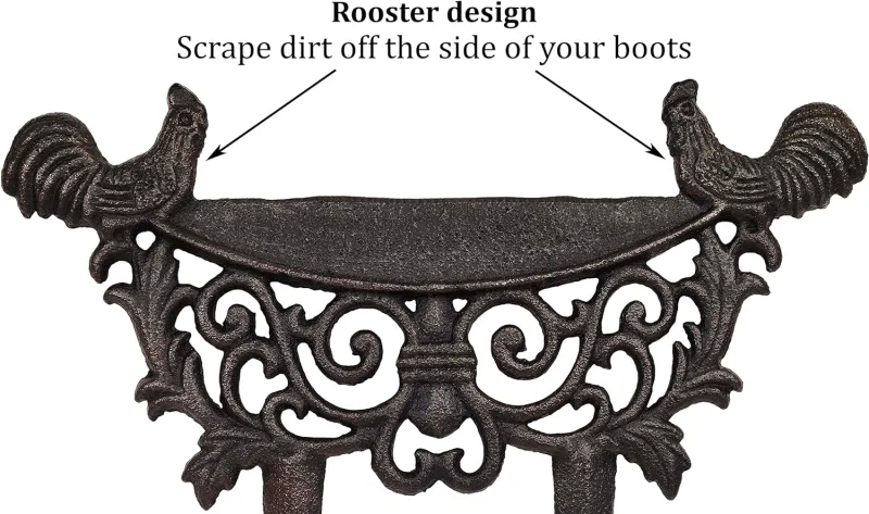 - Nice outdoor piece with two cute roosters at the edge to scrape off dirt from the side of your boots.