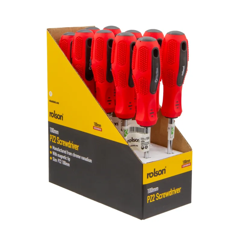 PZ2 x 100mm Screwdriver featuring a polished finish plated shaft that resists corrosion and wear, paired with a magnetic tip for secure fastening and reduced dropped fasteners. The ergonomic tpr grip provides superior comfort during extended use, minimising hand fatigue and improving control. Ideal for precision work in electronics, cabinetry, and general assembly tasks. The compact 100mm length offers excellent manoeuvrability in confined spaces whilst maintaining adequate leverage. Polished finish plating ensures durability and longevity across demanding workshop environments. Supplied in CDU packaging for retail display and convenient storage.