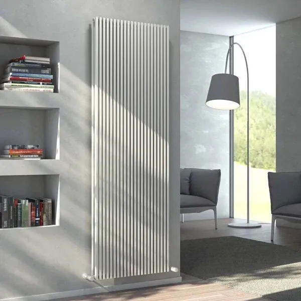 Con corpi radianti orizzontali in acciaio al carbonio verniciato rettangolari da 15×20 mm e collettori verticali in acciaio al carbonio verniciato ø 30 mm.
