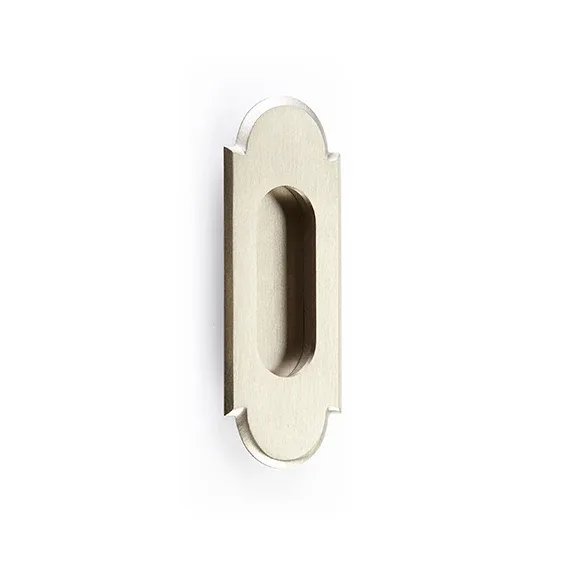 Rectangular Flush “Fleur” Solid Brass Recess Door Pull in Satin