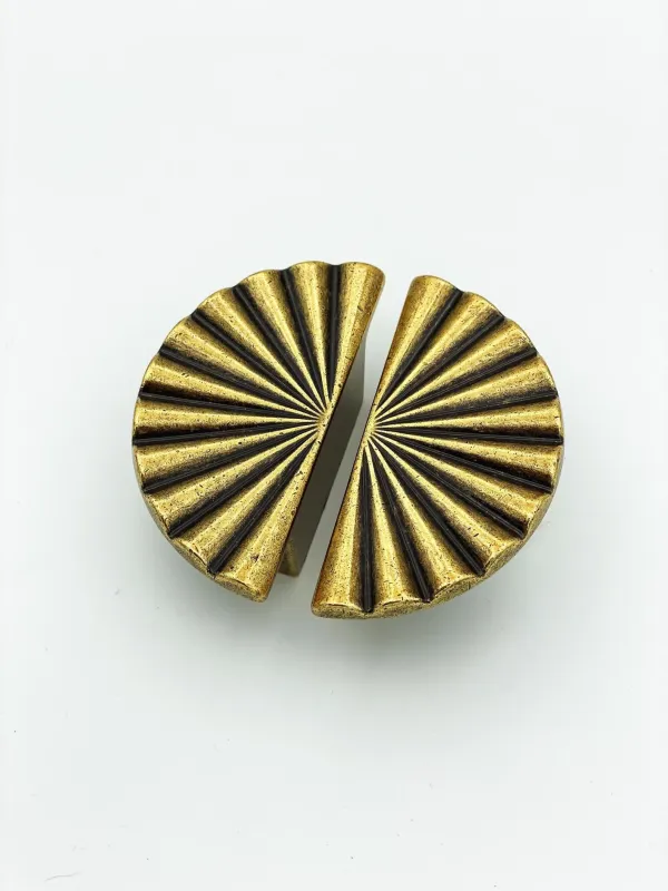Reeded Antique Warm alloy “Half-Daisy” Round Cabinet Knob