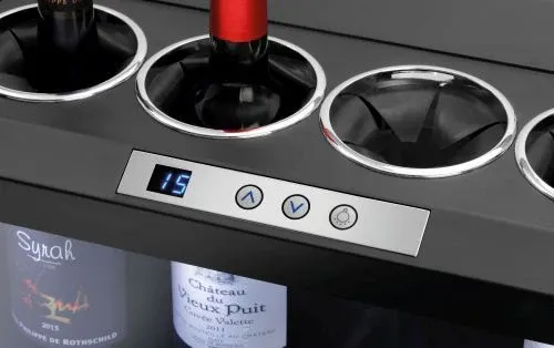Grâce à sa taille compacte et son fonctionnement silencieux, il s’intègre facilement sur un comptoir ou dans un espace de service, tout en valorisant la présentation des bouteilles. Son affichage digital permet un contrôle précis de la température, ajustable par paliers de 1 °C.