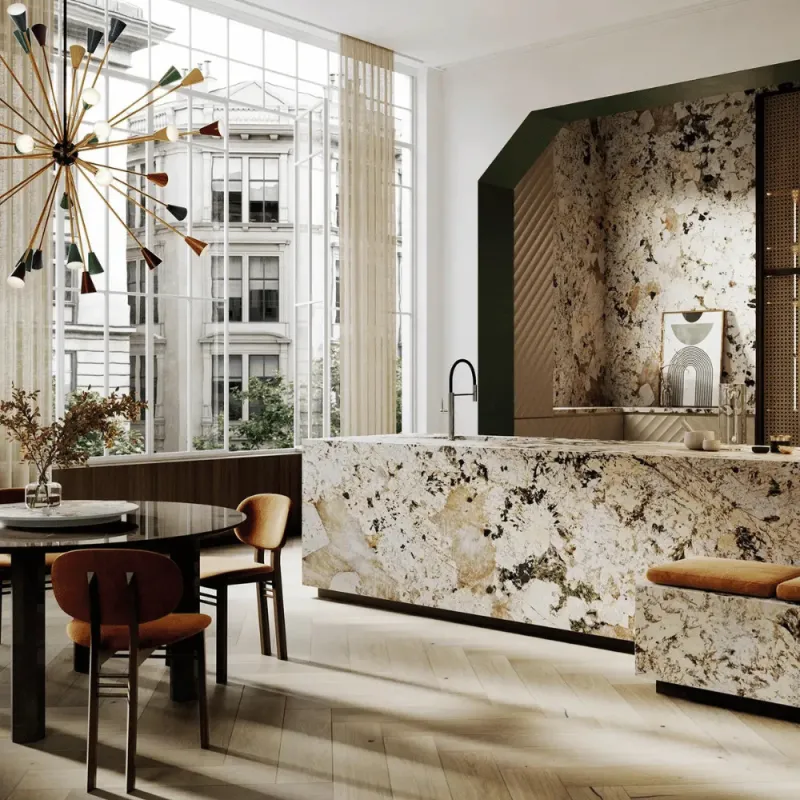Avec son fini blanc éclatant, l’Alpinus n’est pas seulement beau à regarder mais aussi extrêmement durable et facile à entretenir, offrant un cadre idéal pour des créations intemporelles.