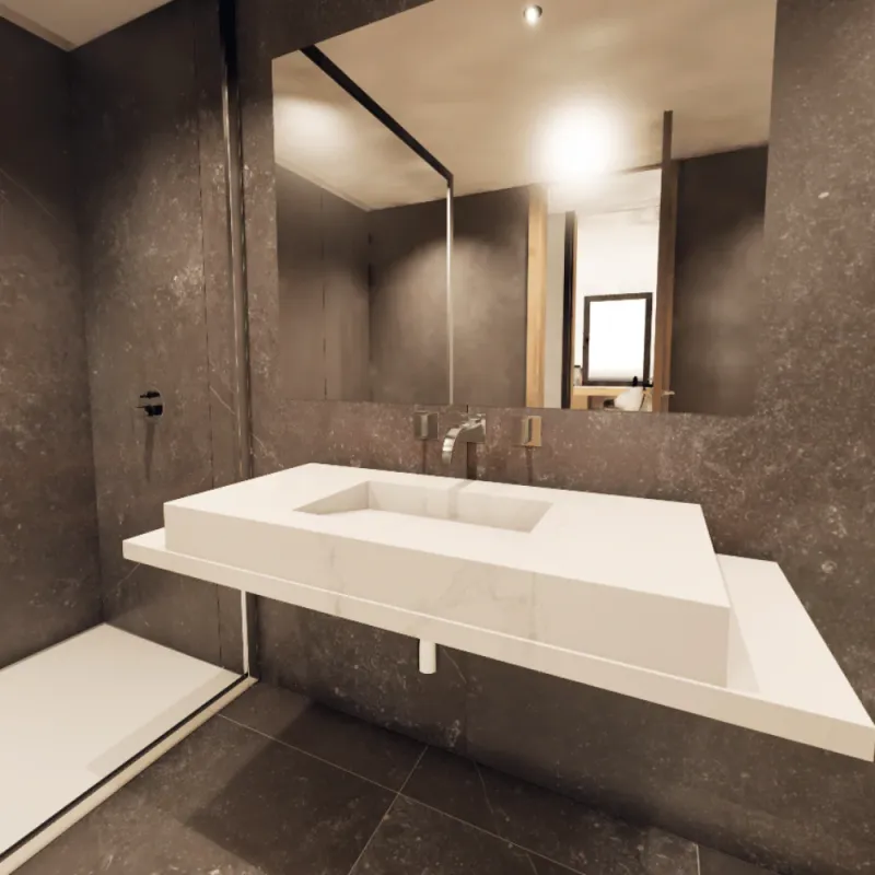 Optez pour nos solutions en Dekton et profitez d’une salle de bain transformée : un espace où le confort rencontre le luxe, et où chaque détail reflète votre goût pour l’excellence. Nos revêtements muraux sont la clé pour une salle de bain à la fois fonctionnelle, élégante et facile à entretenir.