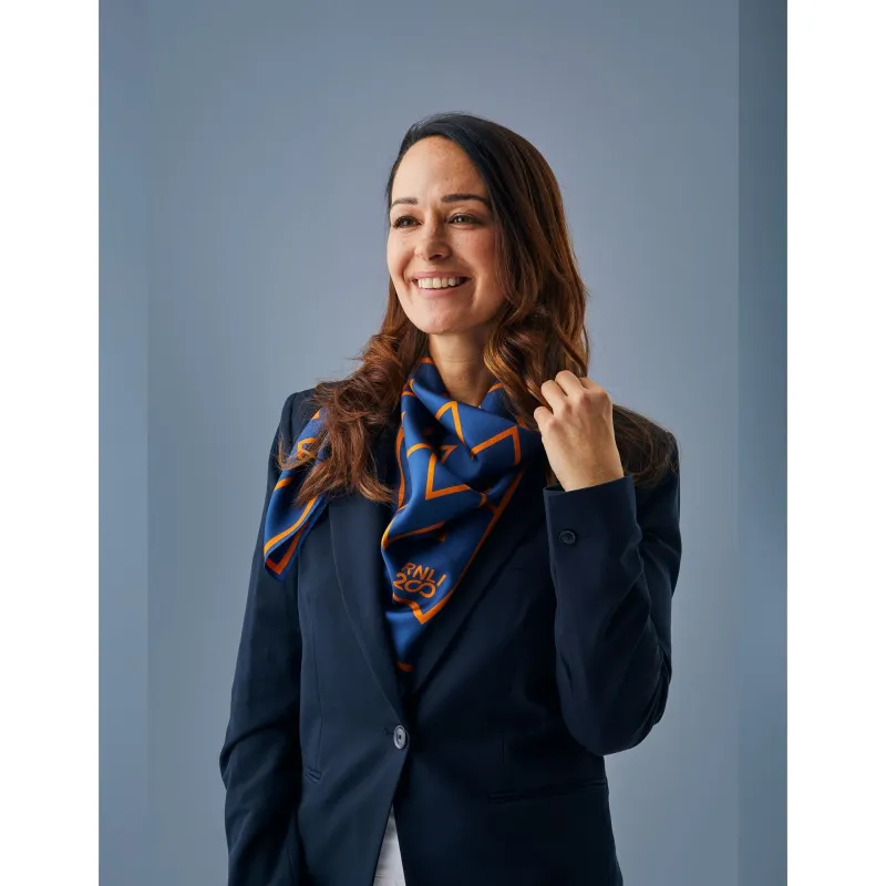 Crafted with precision and adorned with a distinctive zigzag pattern, this select RNLI 200 silk scarf pays homage to our enduring commitment to saving lives at sea, blending sophistication with a nod to our rich naval heritage.