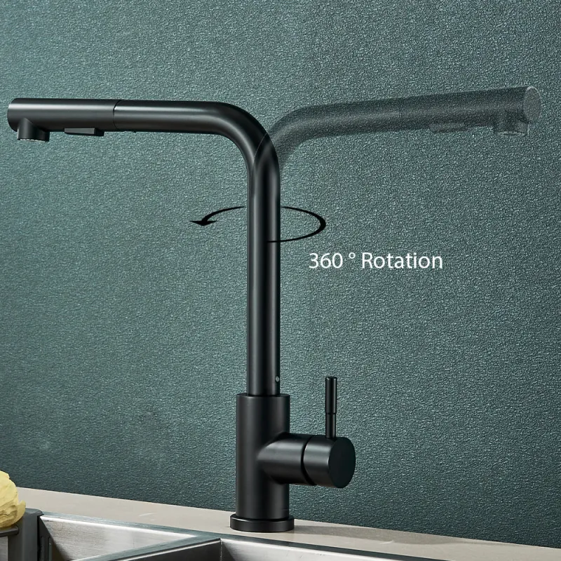 Robinet évier cuisine minimaliste versatile rétractable douchette – Noir: Un ajout élégant pour votre cuisine contemporaine