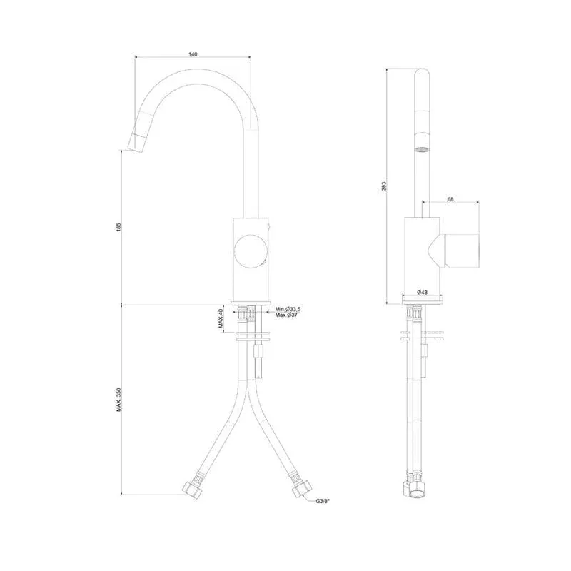 - Avec deux flexibles de raccordement en acier inoxydable 3/8″ certifiés DWGW