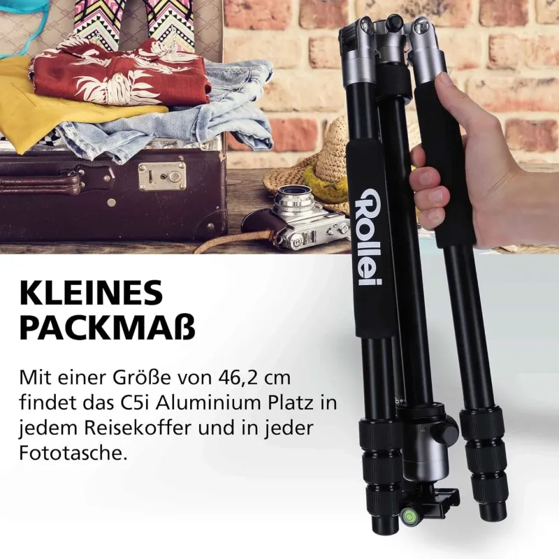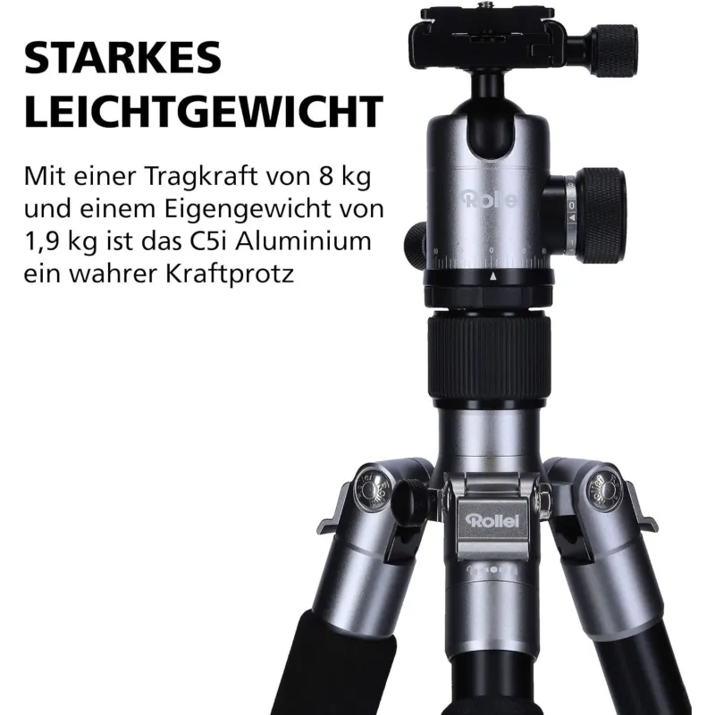 Un treppiede universale Rollei offre ai fotografi dedicati l’opportunità di ottenere di più dalle loro immagini con poco sforzo in molte situazioni di ripresa quotidiana. Con il treppiede Rollei C5i, si ottiene un’attraente combinazione di un treppiede leggero in alluminio e una testa di alta qualità, sufficientemente robusta per le apparecchiature DSLR pesanti, ma con un imballaggio compatto e un peso a vuoto di soli due chilogrammi, si adatta anche al bagaglio.