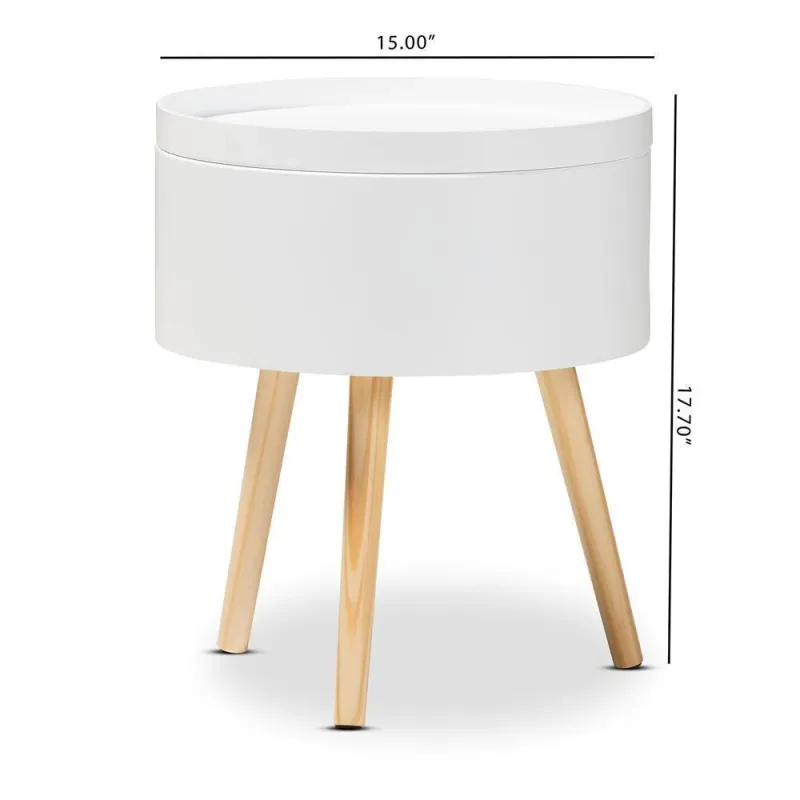 Jessen Mid-Century Modern White Wood Nightstand with Removable