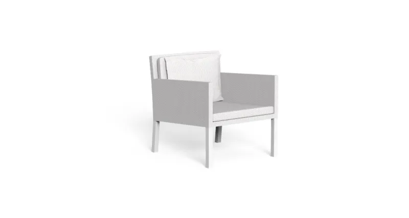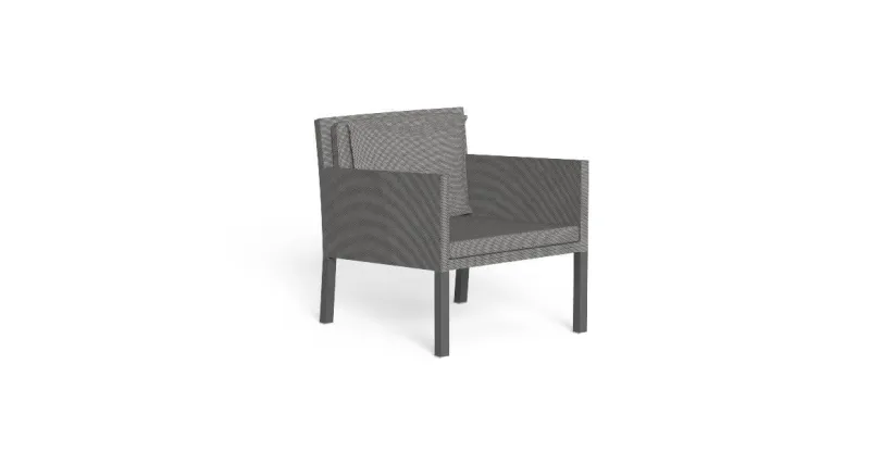 With its dynamic and particular shapes, the Step living armchair completes an outdoor living in full Talenti style. The relationship between the lightness of the seat and the backrest makes the product interesting, not regular, feature that characterizes the collection. The structure is entirely in aluminium while the cushions and the armrests and backrest upholstery are in breathable textilene. Weather resistant.