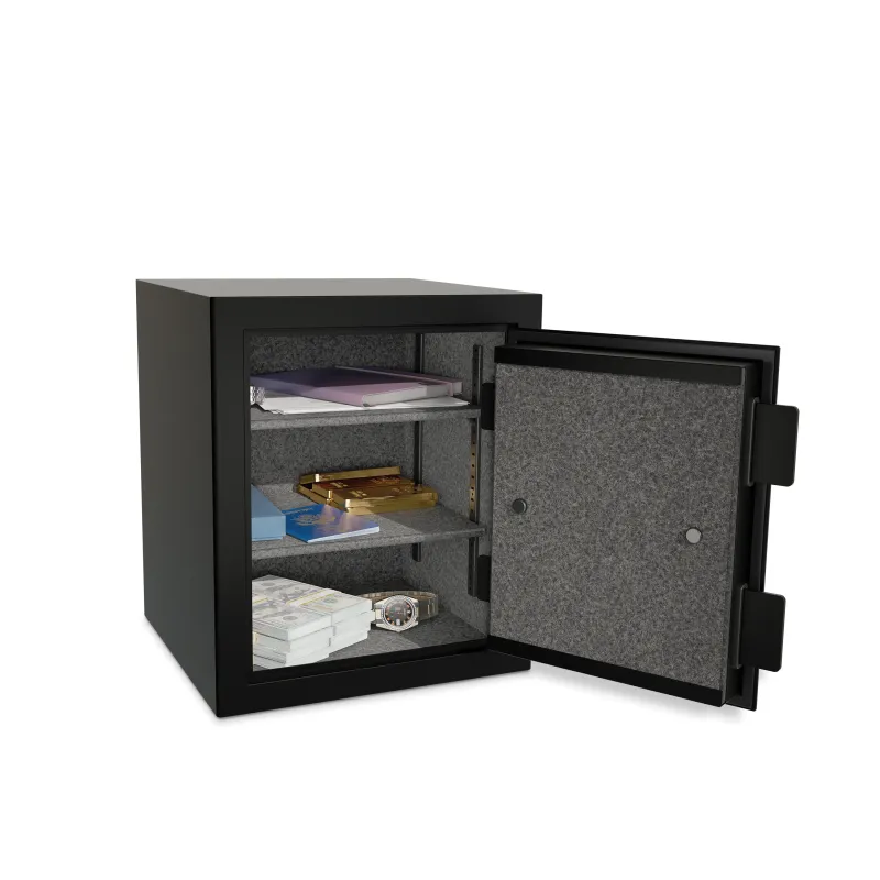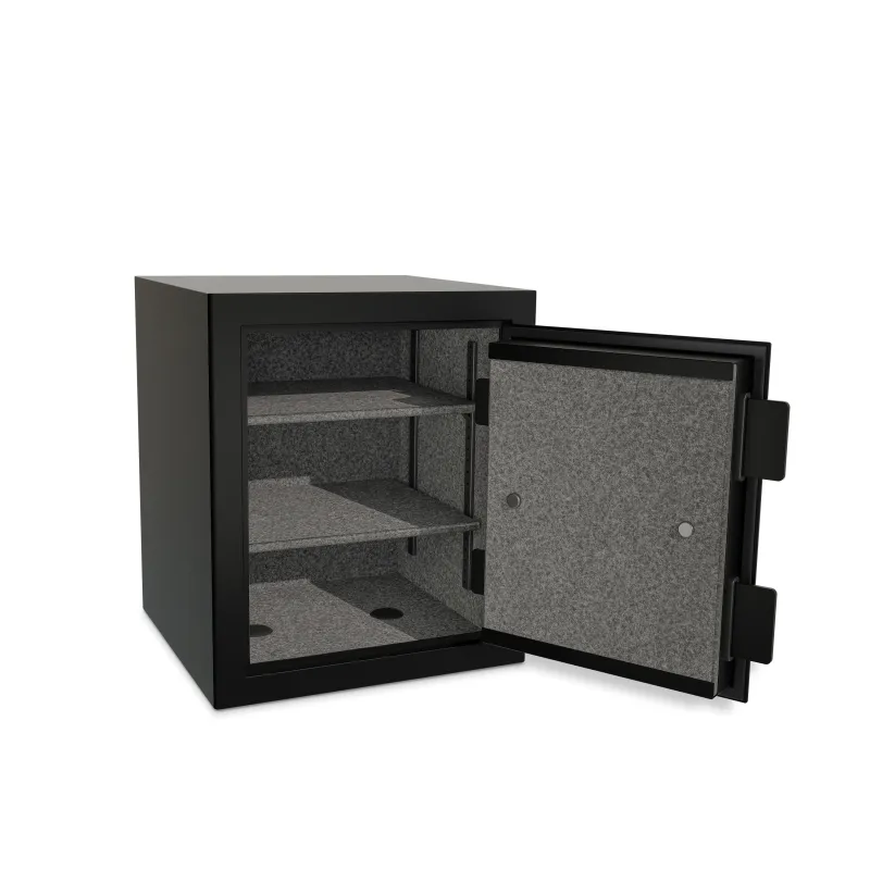 Inside, get full carpeting to protect valuables from scratches and two adjustable shelves for optimal organization. The exterior is painted a refined, matte black powder coat finish, exuding style and durability.