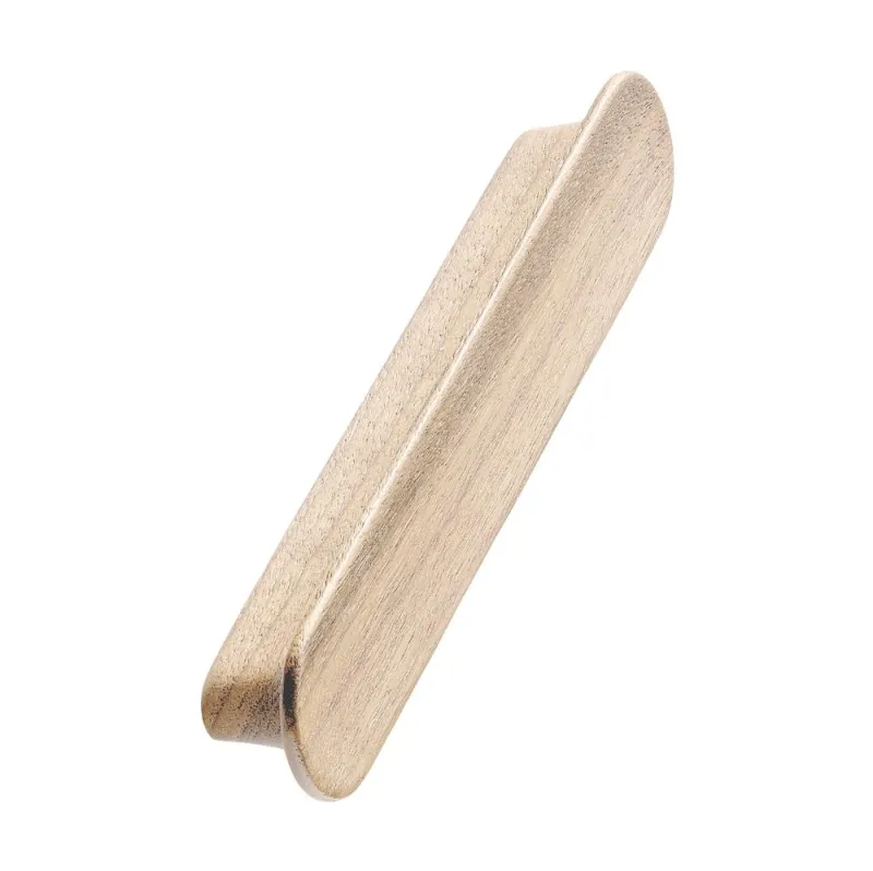 Unlacquered Oak Wood “Tuba” Cabinet Knob and Drawer Pulls. The same beautiful shape from the Tuba knob has been extruded to create a longer handle in the same series. This longer handle moves seamlessly along the furniture with an uninterrupted elegance, extending the aesthetic narrative that began with the Tuba knob’s simple and inspiring design. Together, they form a series that celebrates the beauty of form.