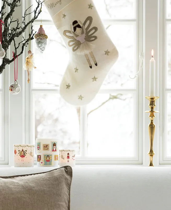 Elegant and clean, the Cindarella pearl stocking is embroidered with delicate seasonal motifs. Its soft Nordic design evokes a storybook winter—perfect for hanging by the fireplace. Crafted with care and full of charm. A timeless touch for holiday traditions.