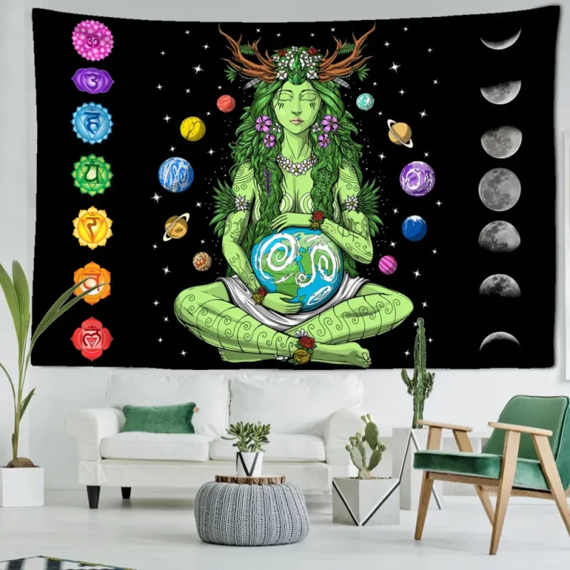 Crafted from high-quality 100% polyester, this tapestry showcases a mesmerizing design by tiantusheji, featuring the captivating Green Girl Seven Chakra pattern. Its intricate details and vibrant colors are sure to bring an enchanting touch to any space.
