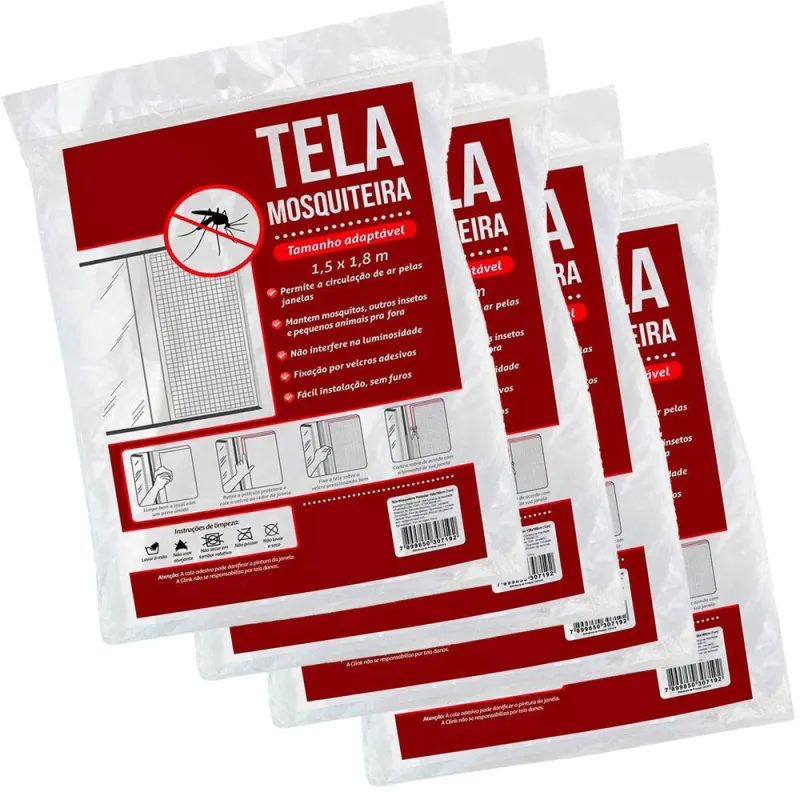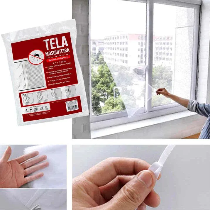 A instalação é fácil e sem furos, basta colar as fitas autocolantes na lateral da janela e fixar a tela sobre elas.