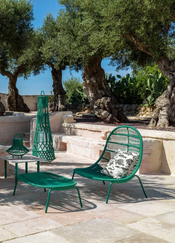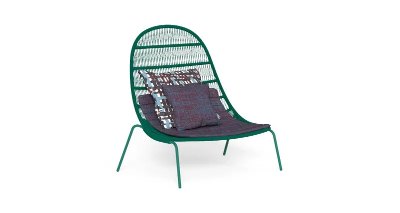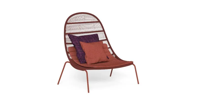 Panama Lounge Armchair is projected to embrace the whole body for a moment of relax. Comfortable and functional, it stands out for its low sitting, supported by an aluminium structure, covered by a weave of synthetic nautical ropes. Thanks to its weather resistant materials, Lounge Armchar is ideal for outdoor furniture and recalls the shapes of nature with its soft lines.