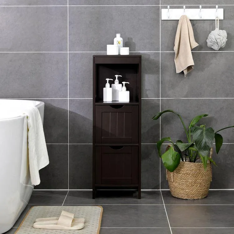 DURABLE-MEETS-VERSATILE: Made from sturdy P2-grade designed wood, this floor cabinet with a simple design and classic espresso finish is not only built to withstand everyday use, but also looks striking in your living room, hallway, study, and more