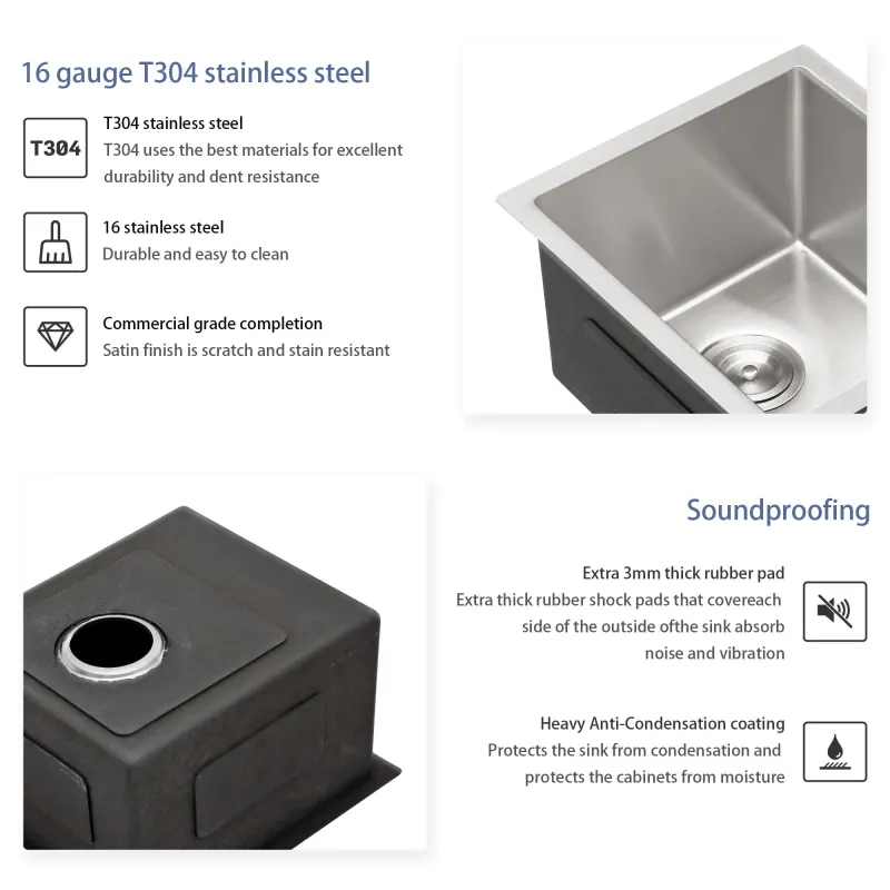 - Coating and Silencer Pad: Exterior coating prevents condensation; 3mm rubber pad absorbs sound for a quieter kitchen