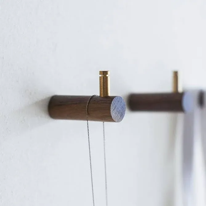 A hand crafted walnut floating peg hook total with fittings. These Hand Made contemporary style Walnut wall hooks (Sold individually) are produced in my workshop in North Wales.