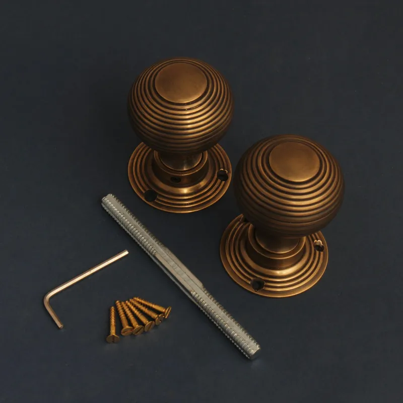 Victorian style beehive mortice door knobs made from brass. Handmade in solid heavy brass means they will age naturally over time but can be polished up with a brass polish if desired.