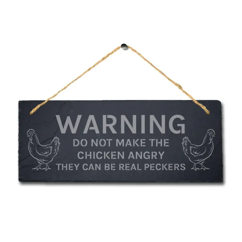 Warning Do Not Make Chicken Angry Engraved Hanging Slate Chick