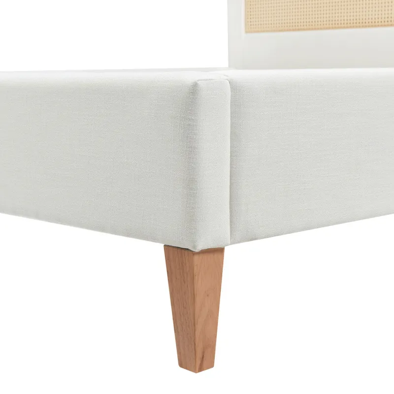 Haley – Queen Upholstered Cane Back Platform Bed – Antique White<