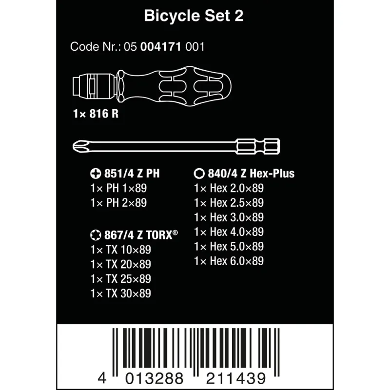 Tool specialist Wera presents Bicycle Set 2, a efficient 13-piece screwdriver toolset with 89mm bits for bicycle maintenance and repairs. Supplied in a lightweight and hardy folding pouch, this set is suitable for Road, MTB and E-Bikes.
