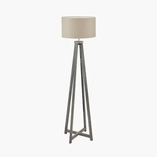 Bring calm, coastal charm to your interiors with the Whitby Floor Lamp Base in a soft grey wash wood finish. With its four tapered legs and subtle criss-cross detail, this slender design is both classy and understated—perfect for adding height and natural texture to your lighting scheme.
