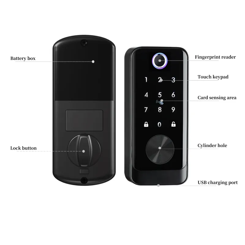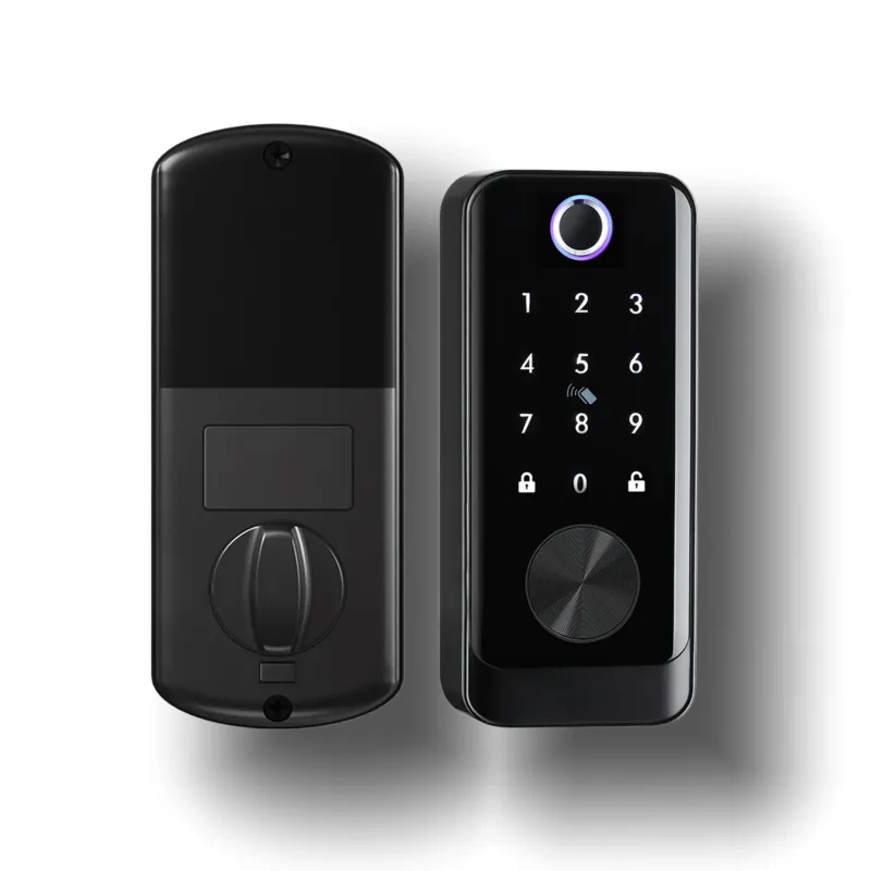 - This electronic deadbolt with a digital keypad offers four unlocking options: fingerprint, PIN, one-time PIN, and a traditional key. Ideal for securing front or back doors to the home.