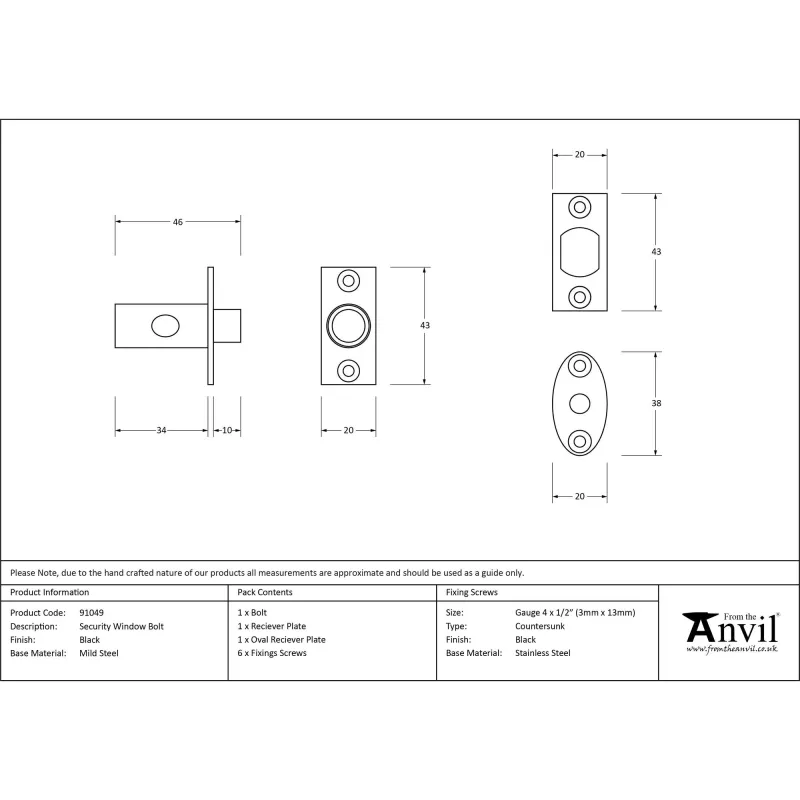 Black Security Window Bolt | From The Anvil
