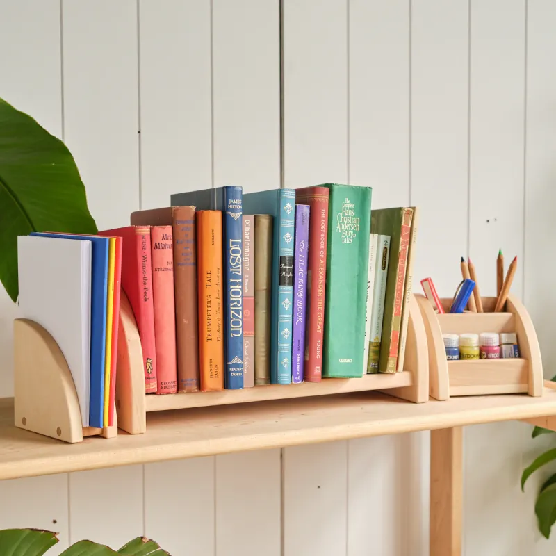 Elevate your workspace with our versatile maple wood desk organizer set! With its sleek design and practical features, this desktop book holder, pencil holder, and folder holder combo effortlessly integrates style and functionality. Showcase your beloved books while keeping your writing essentials or other stationery neatly organized. Whether used together or separately, this set is a chic addition to any room, bringing both aesthetic appeal and practicality to your workspace or home office.