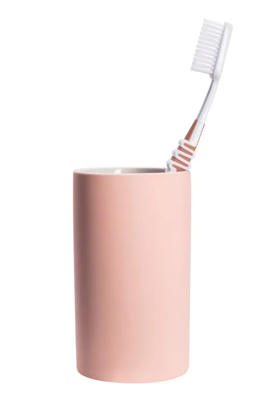 Der Zahnputzbecher MONA in der Farbe Nelke sorgt für stilvolle Harmonie im Badezimmer und setzt mit der zarten, pudrigen Rosanuance außen sowie dem glänzenden Weiß innen einen eleganten Akzent am Waschbecken. Das schlichte zylindrische Design mit glatten Außenwänden passt in moderne und klassische Einrichtungsstile und wirkt dabei zeitlos und hochwertig. Mit einem Fassungsvermögen von ca. 260 ml bietet der Becher ausreichend Platz für Zahnbürsten und Badaccessoires. Gefertigt aus Steinzeug überzeugt MONA Nelke durch angenehme Haptik, stabilen Stand und langlebige Qualität. Die Reinigung von Hand ist problemlos möglich und unterstützt eine dauerhaft gepflegte Optik für ein stimmiges Gesamtbild im Bad.