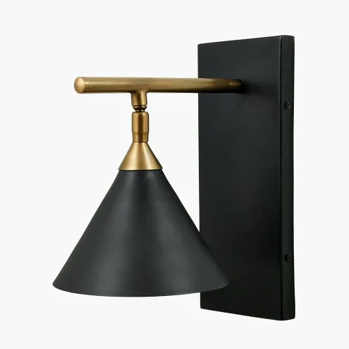 Zeta Matt Black and Antique Brass Wall Light – Pacific ● 30-day money-back guarantee ● 90-day money-back guarantee ▶ Sale Ends in 24 Hours