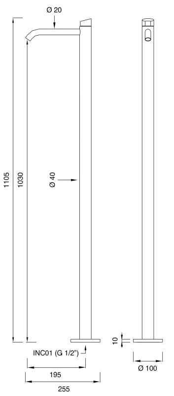 Free-standing progressive mixer for washbasin H. 1105 mm. Rough-in part included.