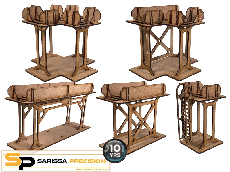 Increase playability to your future city or off-world colony with our collection of gantries. Combine this set with pods and other ground-level gantries in our System Sci-Fi collection to create a dynamic sci-fi, cyberpunk of grimdark wargaming table.